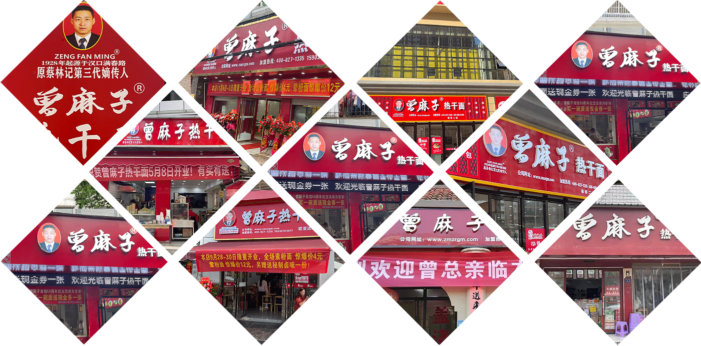2010年曾凡明先生学成创立“曾麻子”热干面,由一家路边小早餐店,创造了半天销售800斤热干面的行业神话,历经十年的发展已成为集研发、生产、培训、加盟推广等于一体的现代化、多元化的餐饮企业。